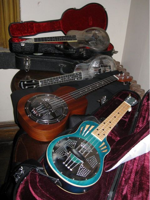 Posted on January 28, 2010January 29, 2010 by Tim Smithies Here’s my pile of resonators used at a recent gig, they are… Tiny Tim’s Beltona Concert National Soprano Ohana/Delta Prototype Tenor Delta Custom Concert by John Alderson Mmmmn. Share this: Share on Facebook (Opens in new window) Facebook Share on X (Opens in new window) X Like Loading... Related